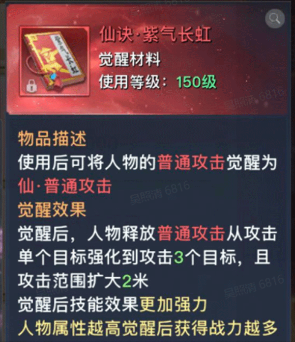 可将人物的普通攻击由单体技能升级到群体技能,且伤害范围扩大