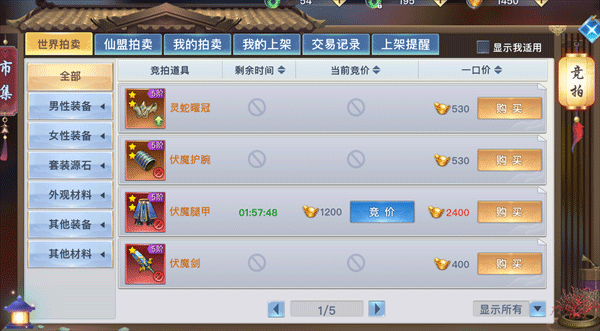 上仙大人每日通过BOSS或其他玩法掉落的非绑定装备、源石、套装石、外观、稀有系统材料等都可在交易行通过元宝自由交易。