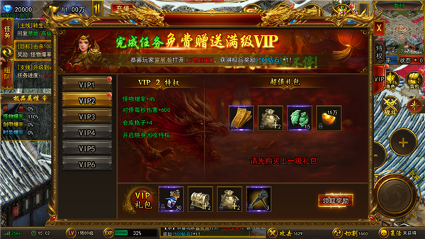 4、随着玩家完成相应任务可免费领取VIP特权。