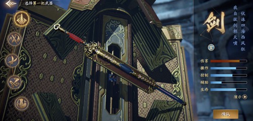 近战武器,各方面比较均衡,在伤害方面较为突出,招式灵动犀利,也是电视剧中主角常用的武器。