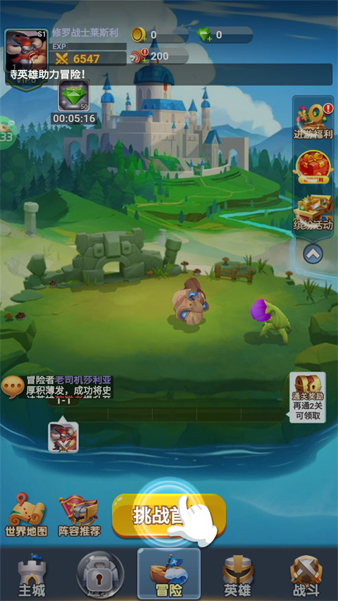 2、有了角色就可以来选择关卡进行挑战。