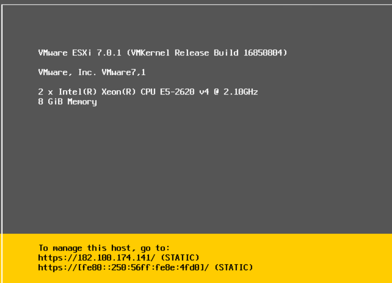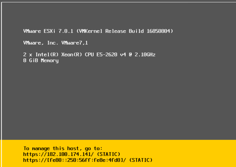 13、服务器重启完成后,进入VMware ESXi 7.0.1正式界面。