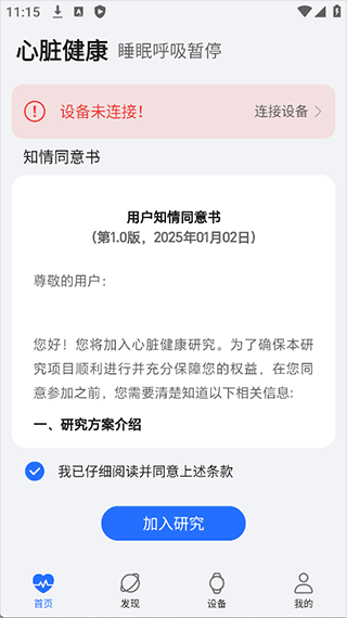2、然后同意相关数据的上传的协议,因为这些数据要上传到相关医疗机构进行分析研究