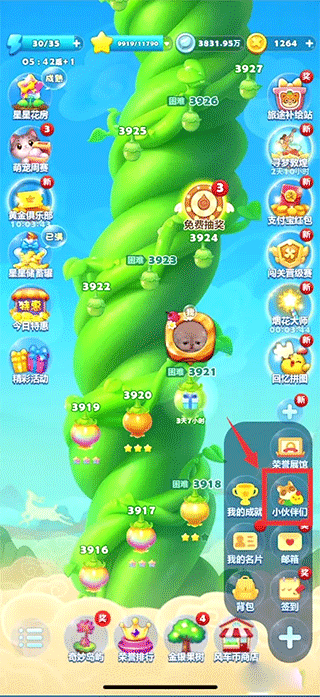 在就来到了开心消消乐的好友星级排名菜单,星级从高到低依次排开,就可以看到自己在好友里面的排名了。