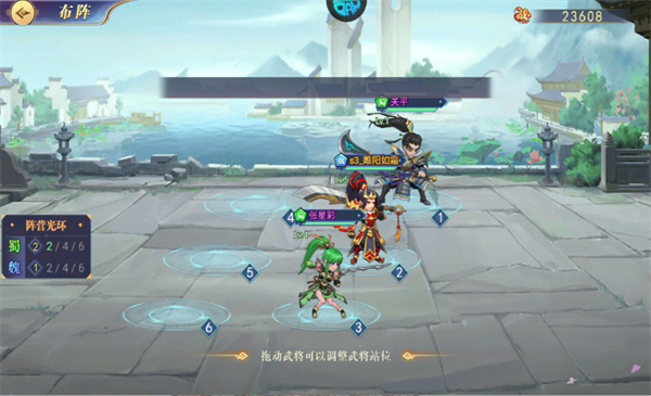 2、游戏开始前需要策略布置阵容,拖动武将可以调整武将站位
