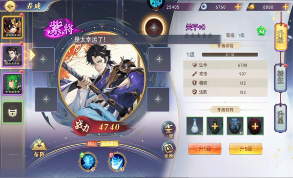 4、通过资源强化武将等级