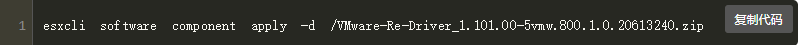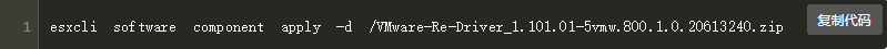 esxcli software component apply -d /VMware-Re-Driver_1.101.01-5vmw.800.1.0.20613240.zip