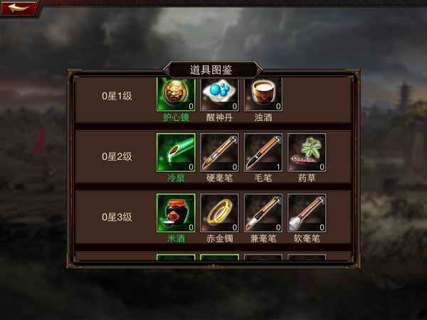 为了方便玩家对武将进行突破,游戏中还准备了一项功能,就是道具预览,点开左上角的道具预览,我们既可以看到武将突破到不同级别所需要的道具了。