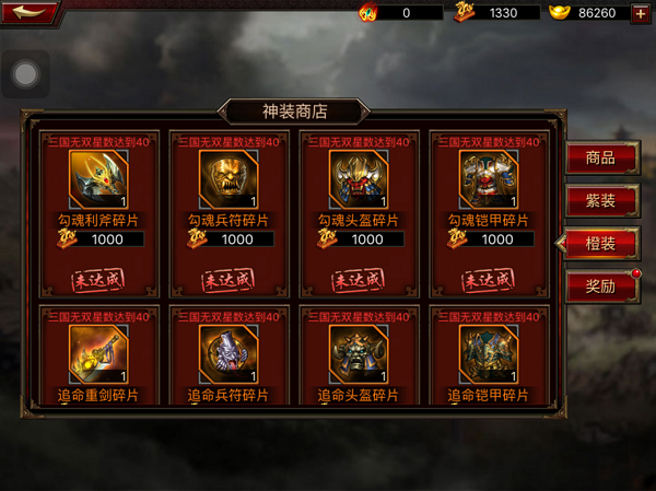 【三国群英传-争霸】中装备品质分为绿色、蓝色、紫色、橙色、红色。