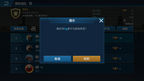 注:当指挥官升职某副指挥官后,会转让战队,变为副指挥官,请进行操作时慎重考虑。