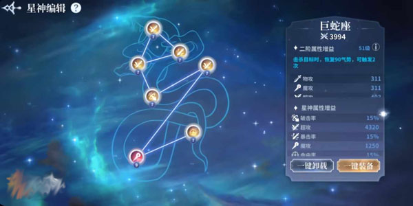 星图可以分为三阶,我们在解锁星神的时候将自动开启星图的第一阶,第二阶需要40级才可以开启,第三阶则需要50级才可以开启。随着星图阶级的提升,其所提供的属性增益效果也将更强。