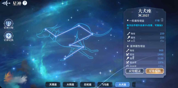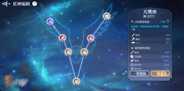 1、鹰图:其增益效果为可以降低目标气势,适合装配的精灵有肉盾、辅助、平衡,比如对面是诺亚+洛世琦的队伍,该星图就可以发挥不错的效果