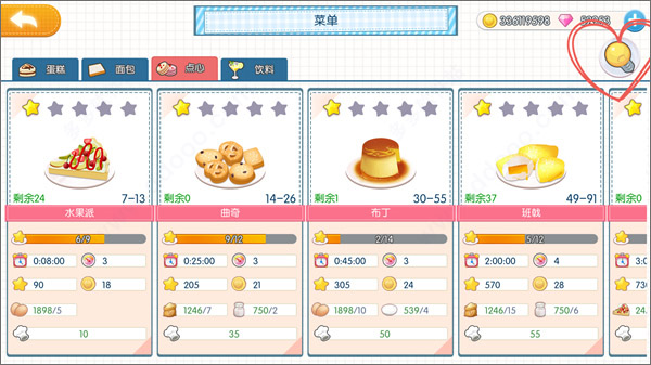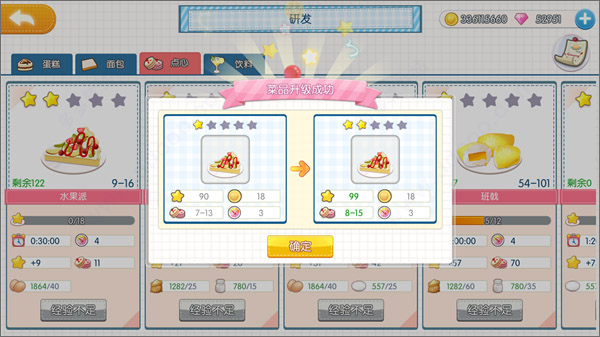 点击切换到研发页面可以看到哪些是具备研发条件的食品,如果不能研发就是食物做的还不够多,继续做起来。
