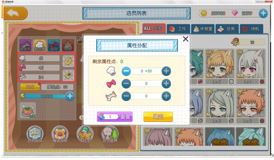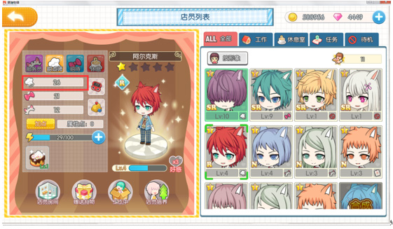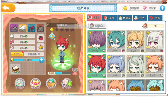 游戏中将有多达23名猫咪男子陪你共同经营甜品店。他们可以作为厨师、服务员、接待员来辅佐各位店长,每一名猫咪男子都有属于自己的技能与能力值,提升他们的属性很关键哦!