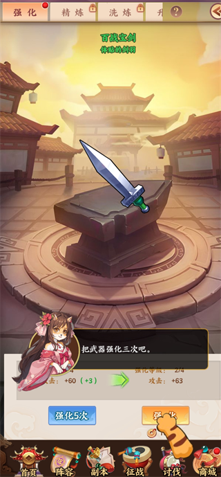 1、玩家可以通过强化,精炼来提升武器的战斗力。