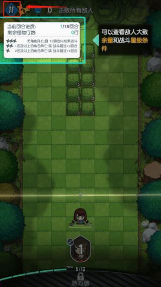 6、点击游戏左上方图示位置可查看剩余敌人数量以及战斗星级条件