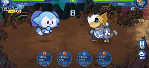 高级形态相对难了一点,每回合固定伤害170,我们可以计算好伤害数值来打,高级形态的速度大概是200左右,我们尽量找速度比他快的同时血量在370以上的精灵来打,这样可以打出三招,能最大程度发挥作用。