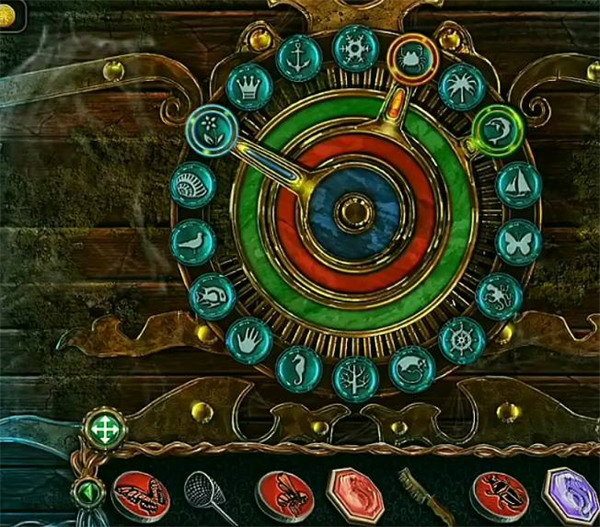 2、玩家要根据图标的图案,把徽章放进相应的孔位,并转动轮盘。就可以解开谜题了。