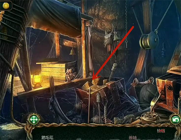 1、玩家要找到鹅毛笔,就能够解开谜题,玩家要点击左边的抽屉,并拿走上面的书籍,就可以找到鹅毛笔了。