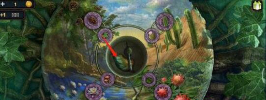 3、玩家要转动左右两个转盘,左边的转盘逆时针转三圈,右边的转盘要顺时针转动七圈,补全中间的图案就可以解开这个谜题了,就可以通关“迷失森林”了。