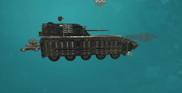 pvp专属重装版战车,附加了装甲,全方位防护,为了稳定就把两侧火箭卸了,换了三门速射炮和一挺机枪,相比之前版本火力有所下降,另外无人小车拆除了自爆,因为自动对战一开始就会自爆。战车有内置推进器,有坡就能上天的那种。
