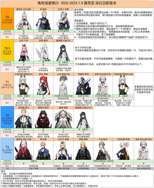 这个榜只针对S-SS3的角色(包括SSS幻奏)。
