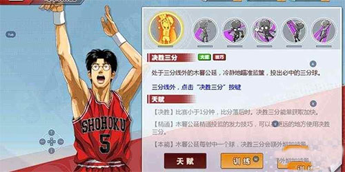 三技能队友的信任,获得队友信任的三井寿,在接到队友传球后的两秒内三分球命中率得到提升。