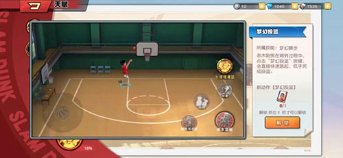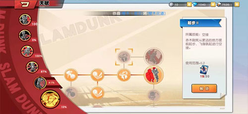目前,游戏中每个球员都有6个技能,1个大招及5个小技能(仙道的“锋卫摇摆人”除外)。每个技能均有10个左右的专属天赋,需要消耗篮球币、技能训练卡及球员特训卡来解锁。