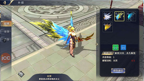 玩家通过消耗对应道具解锁对应翅膀