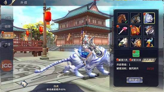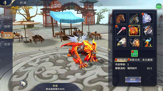 玩家通过商城购买解锁坐骑道具碎片进行解锁,