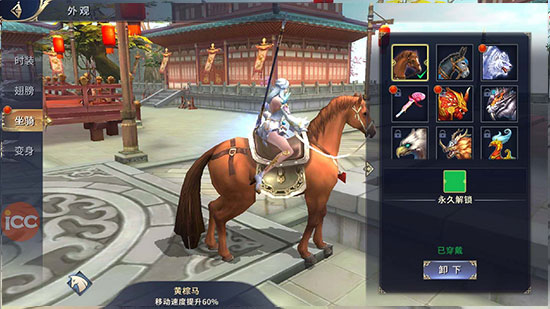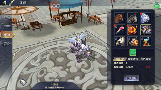 玩家通过消耗对应道具解锁对应坐骑