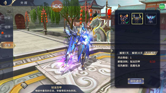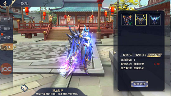 玩家外观系统包括:坐骑,翅膀,变身,时装4类;以下分别介绍: