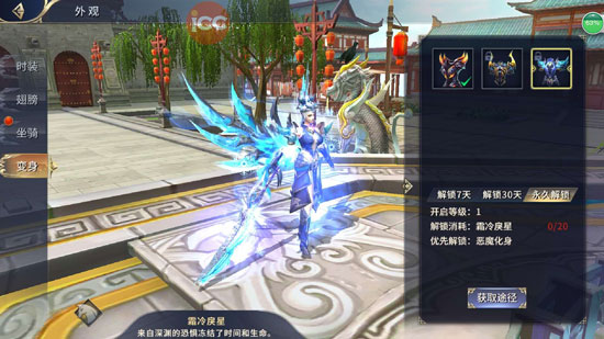 玩家通过商城购买变身外观道具,来改变怒气值达满变身外观,解锁变身外观周期为7天、30天、永久解锁,所用道具数量不同如下: