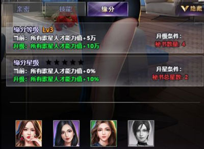 2、根据不同秘书的技能,给人才提供陪读赚速加成、能力值加成、谈判时临时能力加成。秘书约会可以获得经验,亲密度越高,每次约会获得的经验值就越高。经验值可以提升秘书技能等级。