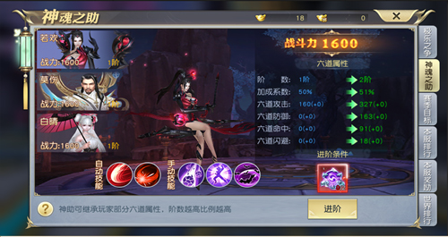 而神魂角色的强大之处在于成长性,他们会继承玩家自身一定比例的道心属性,随着玩家变强逐渐成长甚至修为进阶。此外神助角色还拥有多种强力主动技能,消耗副本内掉落的技能点数即可使用,非常考验玩家的策略头脑,使用得当亦能大幅降低副本难度。