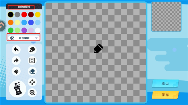 5、进入制作喷涂页面后,左侧有颜色选择、颜色编辑以及各类工具菜单,右上角可以预览你绘制的喷涂全貌。绘制完成后,点击右下角的 “保存” 按钮。