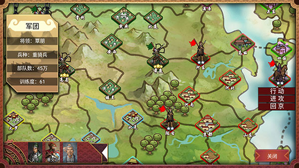 首先是训练度,要组建军团就要有壮丁,可以让兵部在全国范围内征召士兵。征召完士兵之后,点击加强训练可以进行练兵,每回合都有增长,速度比较慢。需要注意的是,每次征召士兵之后,都会导致训练度大幅下降,因此如果组建军团的需求比较迫切,切记要先等训练完成之后再重新征召士兵。