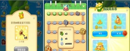 游戏每关完成获得的星星数可以积累换取道具、每天游戏签到获得、购买风车币来获取道具。