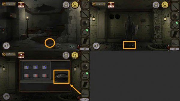 6、棺材边上拿到【石头】,用【石头】敲破雕像下的碗。