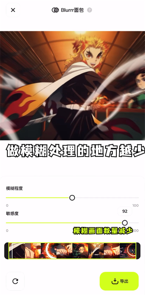 7、画面差导比较大的地方,查看是否会有明显的错误,如果有可以在此基础上增加敏感度数值,如果这些地方没有弯化,可以在此基础上降低敏感数值,最终有运动的部分大多呈现出均匀,无果冻的模糊就表示这个值是最适合此视频的,直接导出就可以。