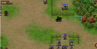 本关开始杨延德阵前骂阵,但估计是个新手喷子,所以敌军没人鸟他。全军摆好阵型往下压,走到离南面城门步兵前几格的位置,引出关卡内的2骑兵和2策士击杀。其他敌军不会动。