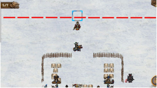 注意 : 以第一回合的孟良为中心线,我方人员不能超过或并行在中心线上,否则敌军全军出击。(这关从后面绕敌人不会主动出击。注意留个兵给孟良推荐留耶律沙给他防止他乱走让敌人出击了)如图: