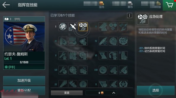 当舰长被派遣到新的战舰上上,必须经过再训练,获得当前等级经验值的一半才能熟练掌握新的战舰。再训练期间,舰长一半的技能会被禁用,实力大打折扣,你可以通过战斗积攒经验值,也可以消耗银币、金币或全局经验,加快再训练的进程。