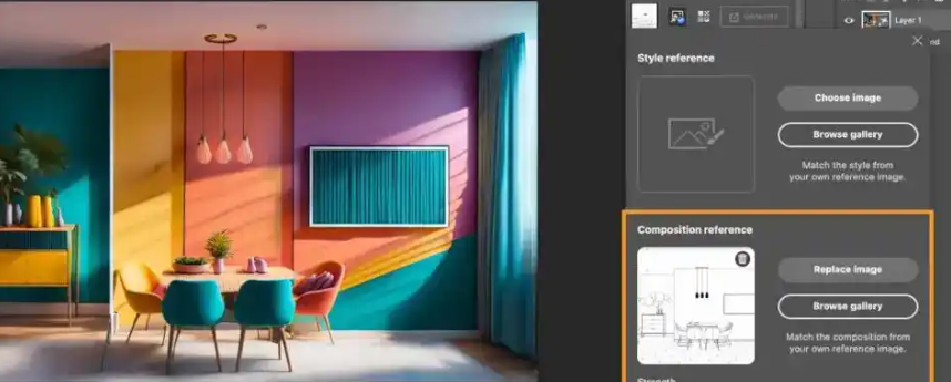 Photoshop 会保持参考图的布局特征,同时按照文字提示的视觉风格生成全新图像,特别适用于需要保持特定姿态的人像创作。