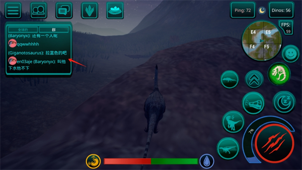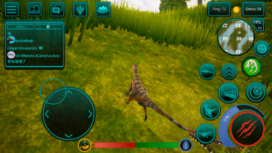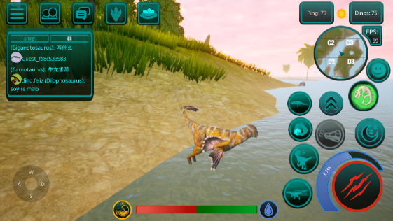 多元恐龙养成系统:玩家可选择霸王龙、棘龙等食肉恐龙,或三角龙、甲龙等食草恐龙,甚至翼龙、沧龙等飞行/游泳物种。每种恐龙拥有独特属性与技能,需通过捕猎、饮水、躲避天敌等方式培养成长,解锁更高阶的战斗力。