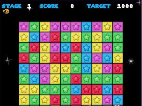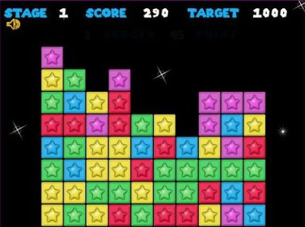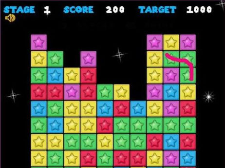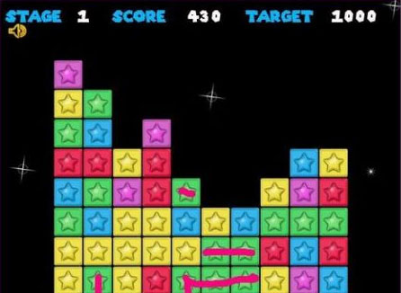 2、消除方法是,点击颜色相同成块的方块或者星星,它就能被消除,同时消除的方块越多分值越高,你也可以尽量让所有的方块被消除,那可是很厉害的。