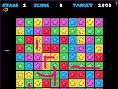 2、如图所示只要是颜色一样的星星连在一起我们就可以点击消除。