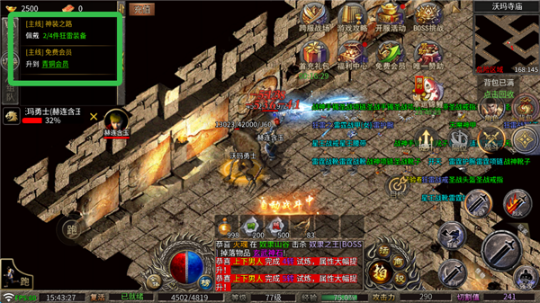 屠龙爆装:核心PVE玩法。挑战盘踞在各大地图的世界巨龙,击败后必掉高级装备和稀有材料,并可能触发全服公告。