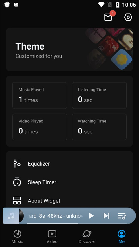 在这里拥有均衡器、定时功能、添加到主屏幕以及每天听歌、观看视频的时长等等。