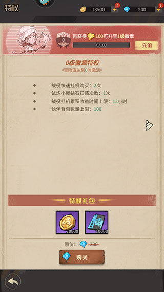 通关战役,获取金币、经验等奖励用于提升伙伴。